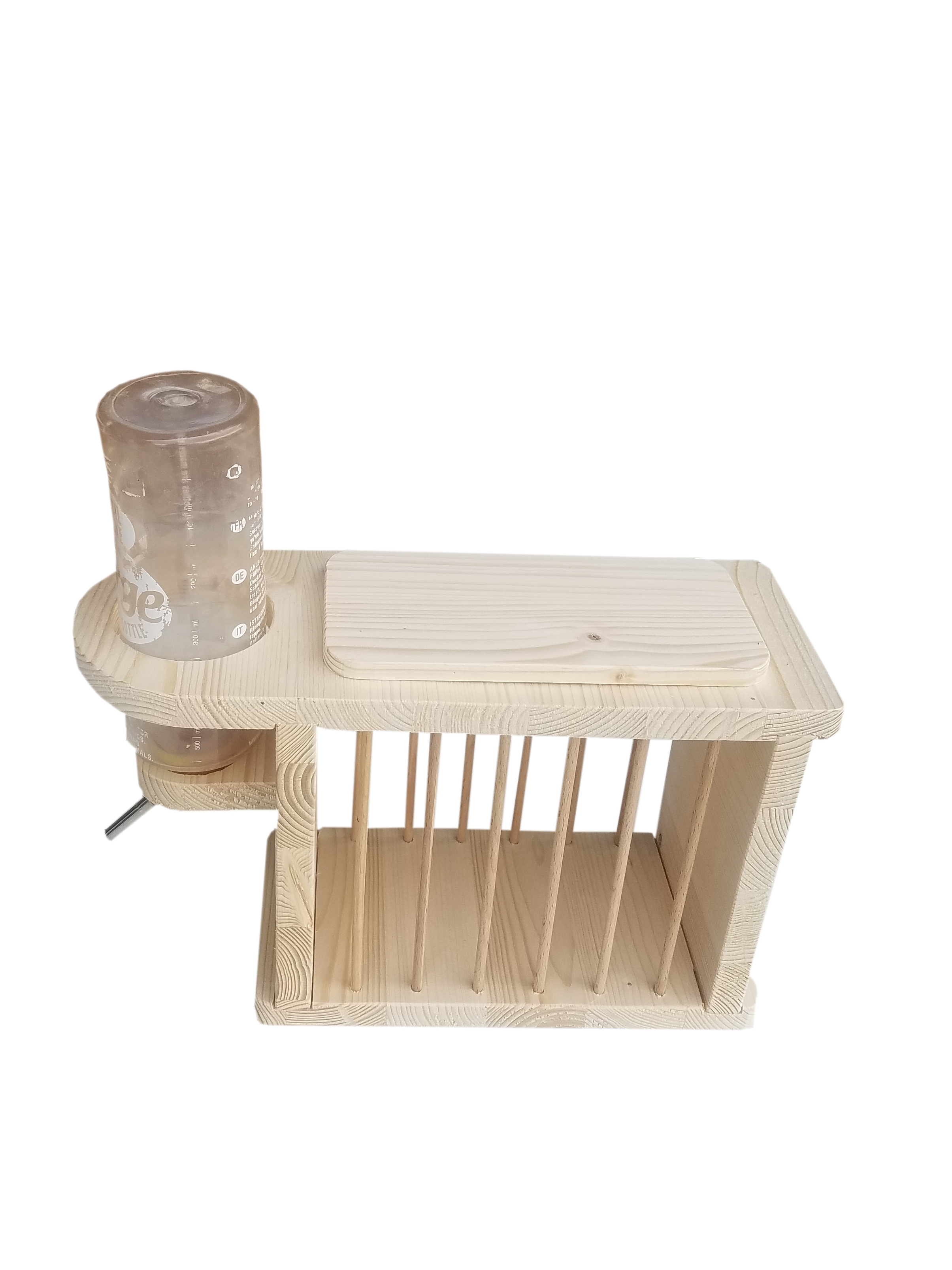 Frei stehende, rechteckige, zweiseitig zugängliche Heuraufe mit Trinkflaschenhalterung. Platz für mehrere Tiere gleichzeitig. Raufe mit großem Fassungsvermögen, einfach von oben zu befüllen. Flaschenhalterung passend für Trinkflaschen bis zu einem Durchmesser von ca. 65mm. Einfacher Flaschenwechsel durch Entnahme von oben, sicherer Halt. Trinkflasche nicht im Lieferumfang enthalten. Aus naturbelassenem Fichtenleimholz, mit abgerundeten Ecken. Hergestellt in Deutschland.