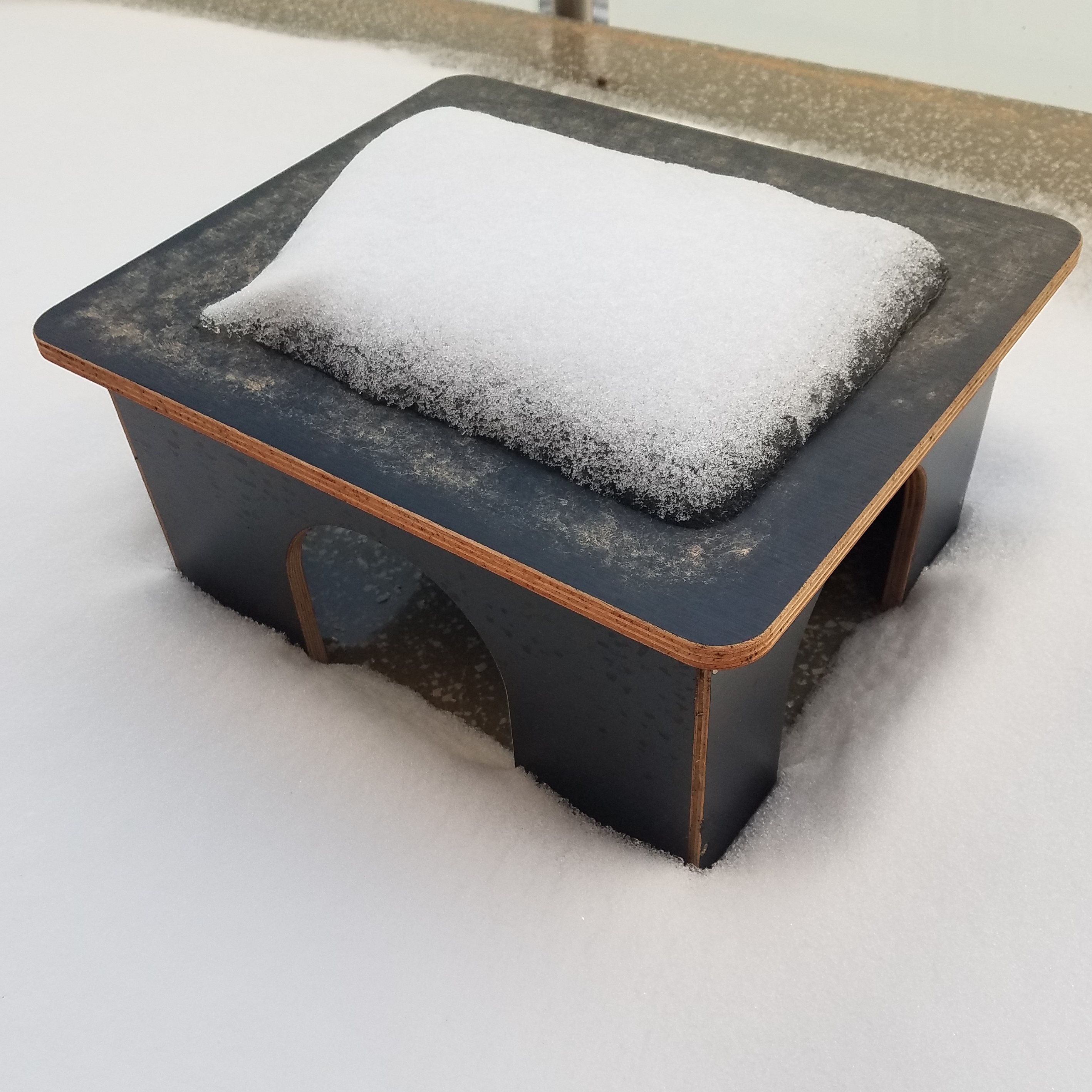 Mittelgroße Meerschweinchenbehausung mit drei Eingängen und abgerundeten Ecken. Die drei Eingänge bieten rangniederen Schweinchen genügend Ausweichmöglichkeit. Aus 9 mm wasserfest verleimtem Furniersperrholz mit schwarzer Phenolharzbeschichtung, hergestellt in Deutschland. Durch die Verwendung des beschichteten Holzes und durch die wasserfeste Verleimung ist das Häuschen auch wetterfest.