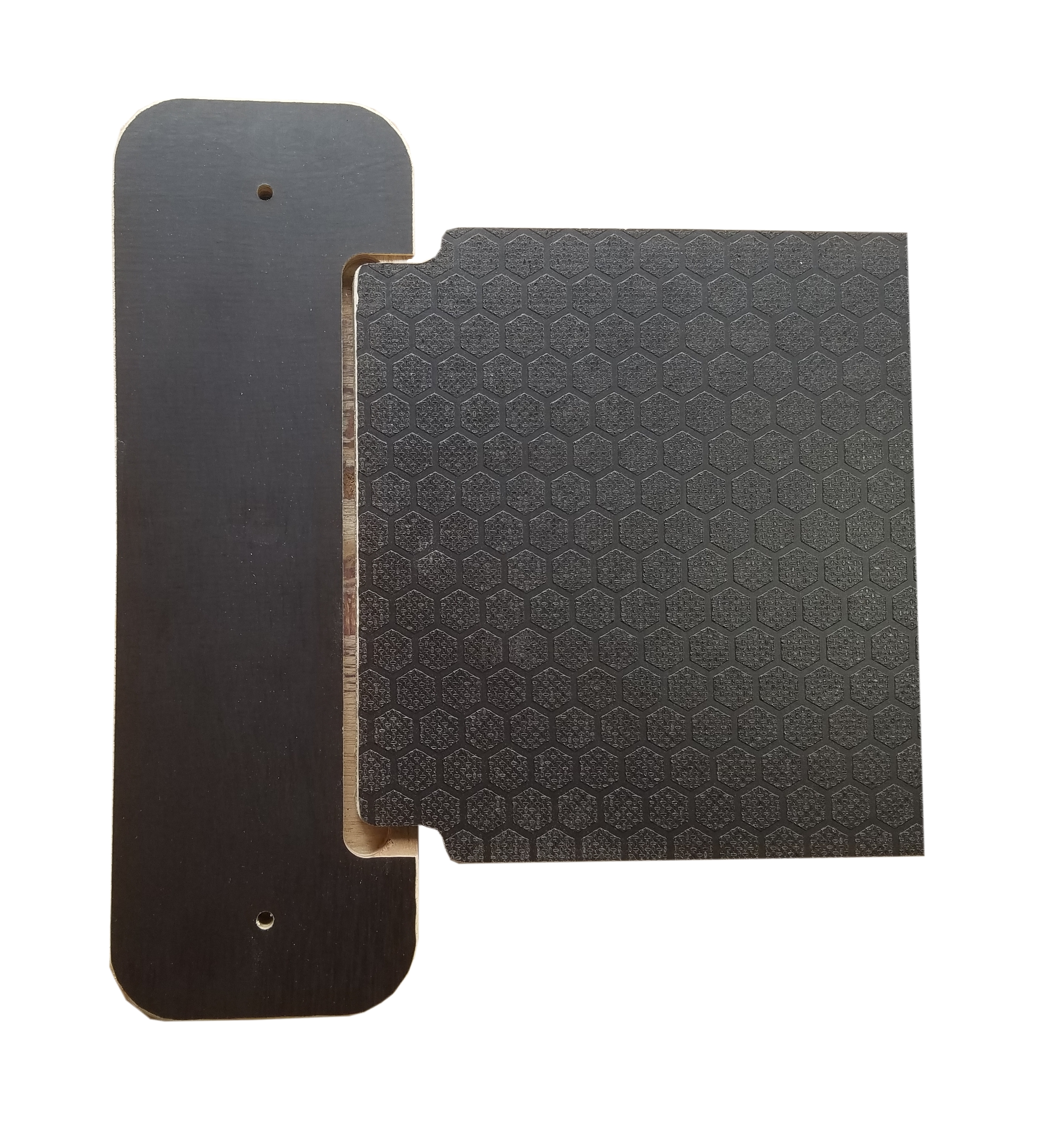 Die Halterung besteht aus wasserfest verleimtem schwarzbraunem Furniersperrholz, hergestellt in Deutschland.