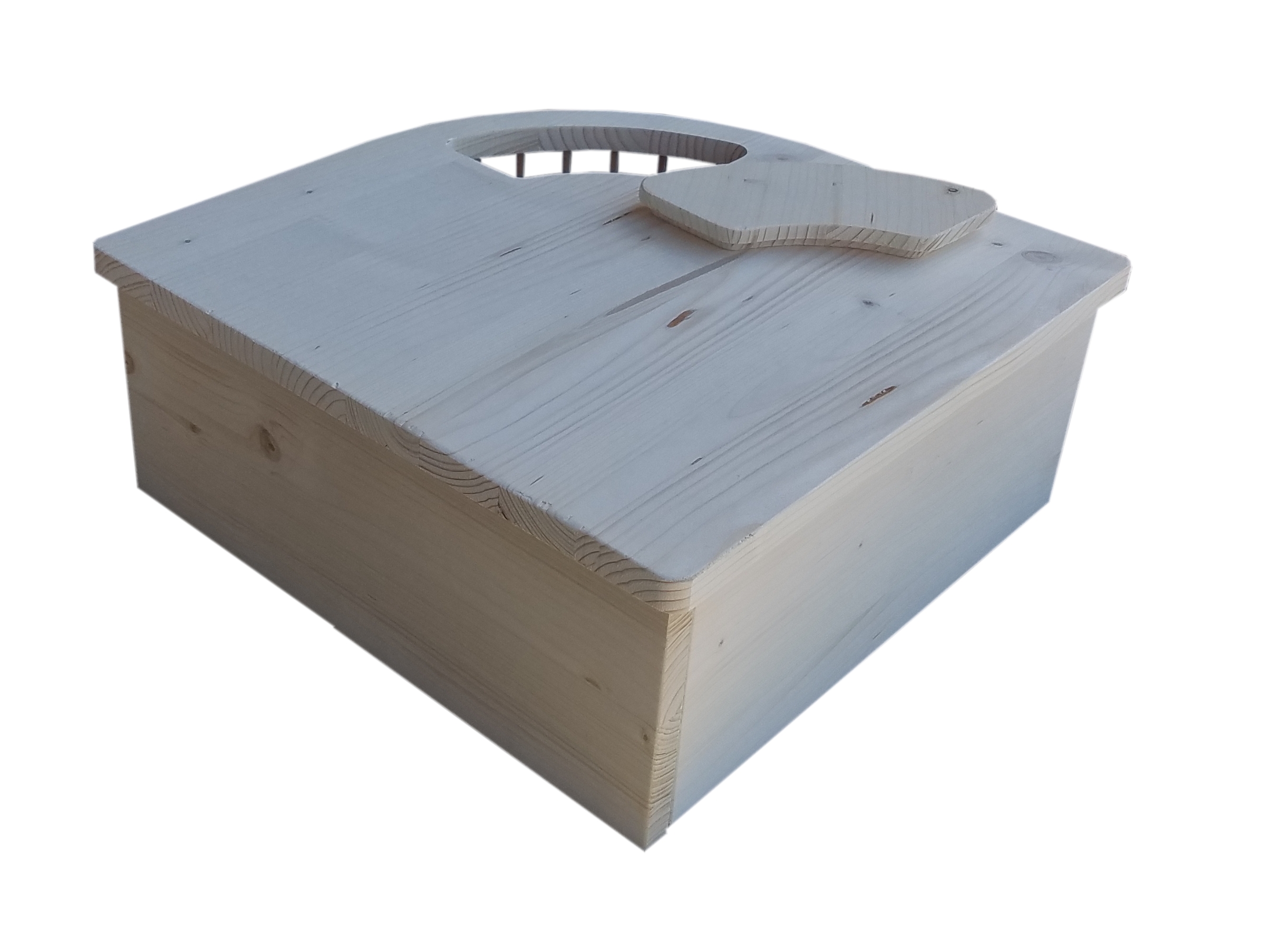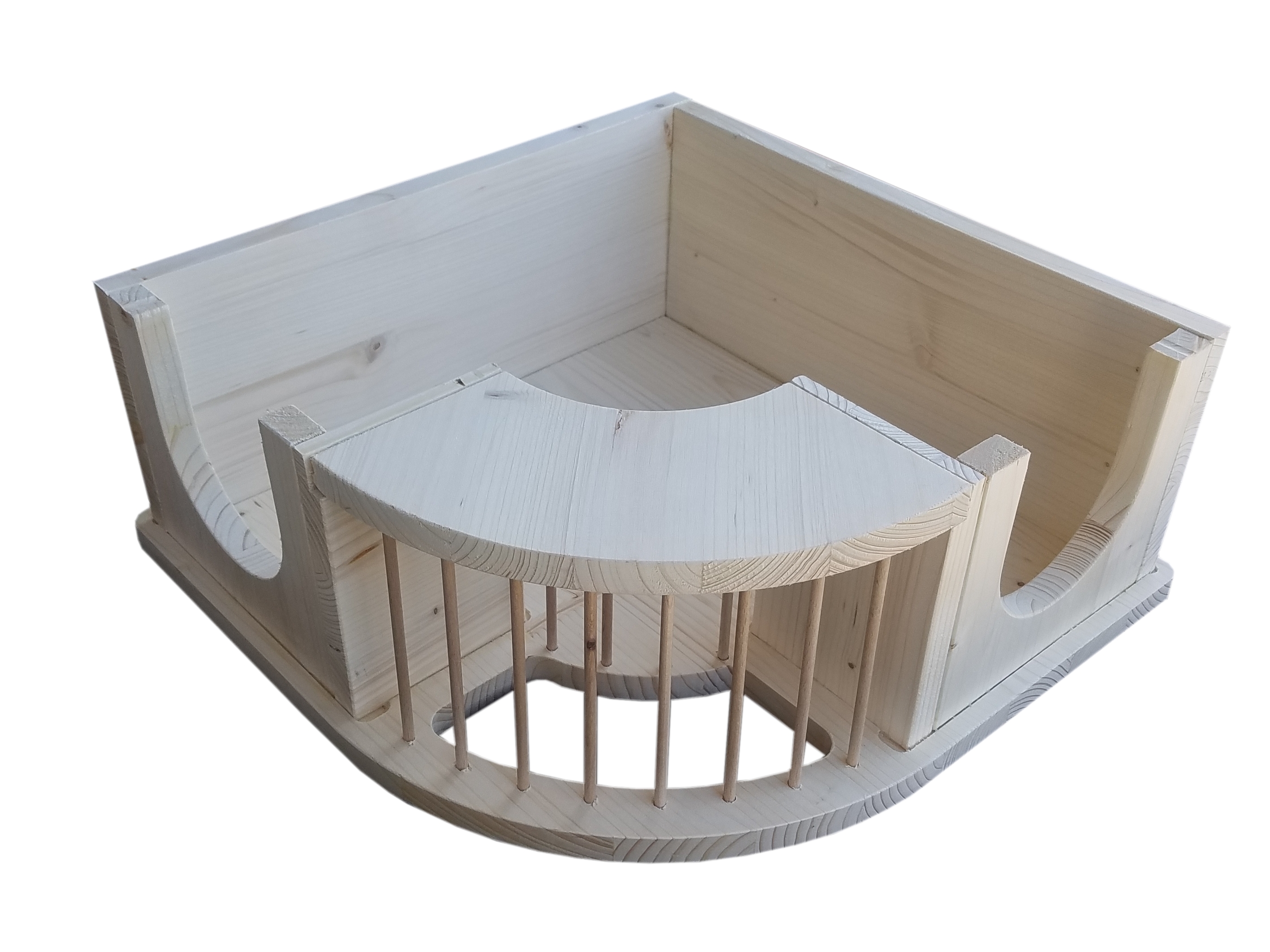 Geräumige Meerschweinchen-Behausung mit integrierter, beidseitig zugänglicher und einfach von oben befüllbarer Heuraufe. Mit zwei Eingängen, abgerundeten Ecken. Aus naturbelassenem Nadelleimholz. Hergestellt in Deutschland.