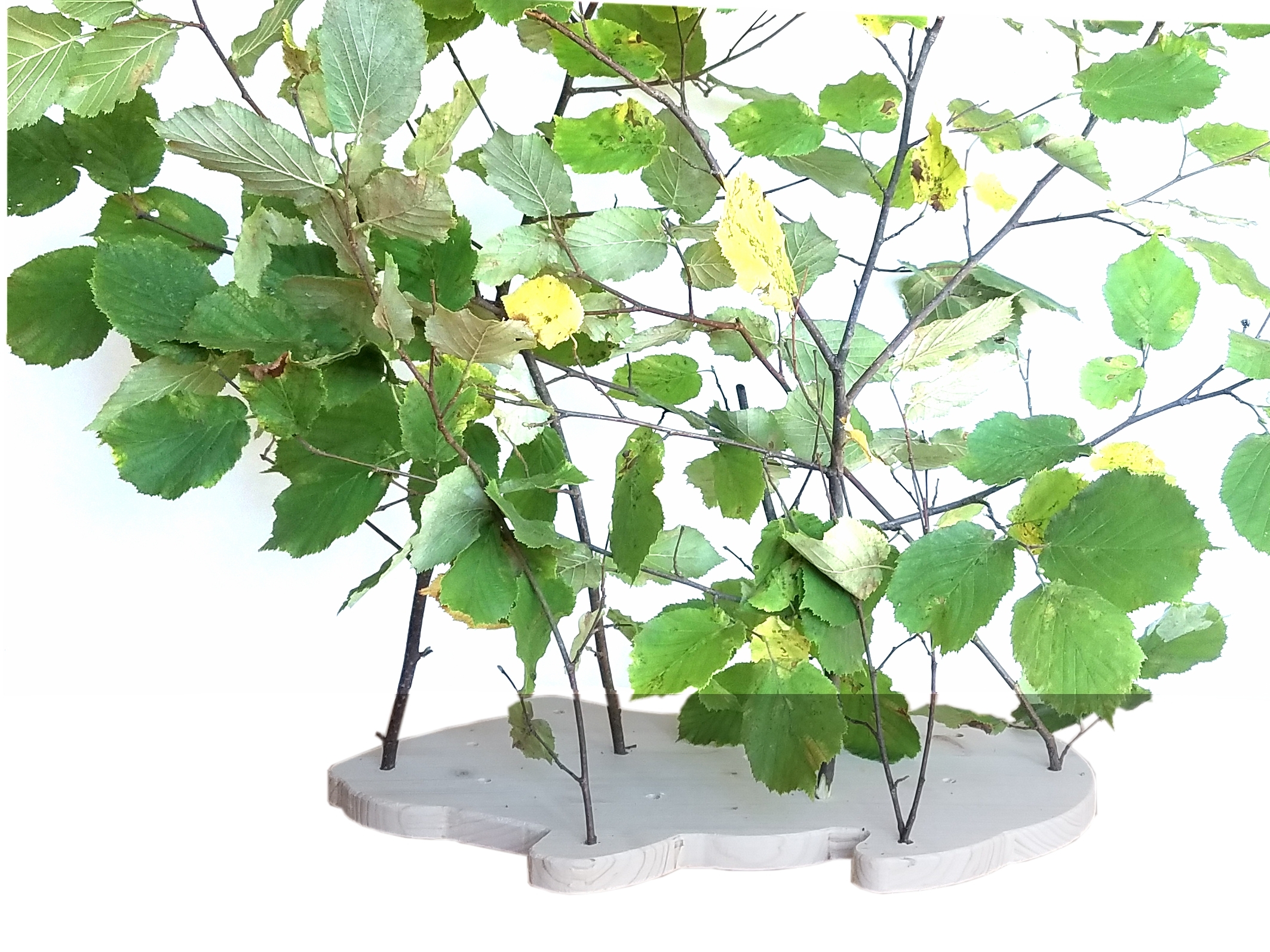 Maße: Bodenplatte ca 445mm x 300mm, Durchmesser Bucheholzstäbe ca 8mm, Leiste ca 430x40 mm. Höhe aufgebaut ca 260 mm. Durchmesser Bohrungen 8 bzw. 10mm