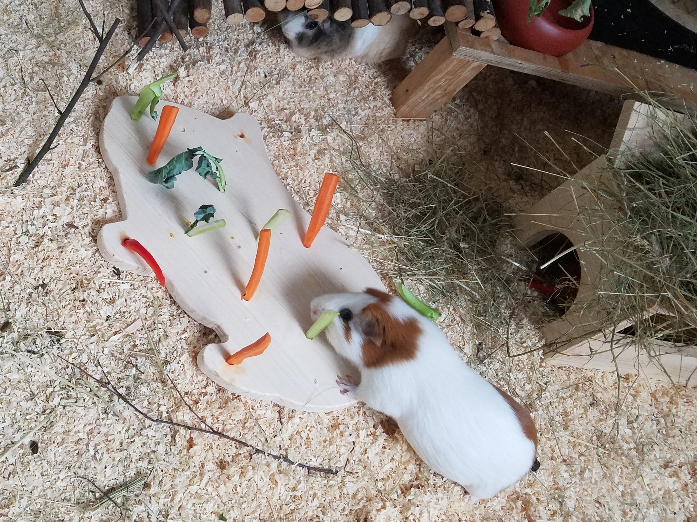 Sehr schöne Beschäftigung und gleichzeitig etwas Sport :-) das Gehege ist viel aufgeräumter und die Meeri`s haben viel Spaß und Beschäftigung damit. Es wurde sofort angenommen. Vielen Dank für diese schöne Idee
