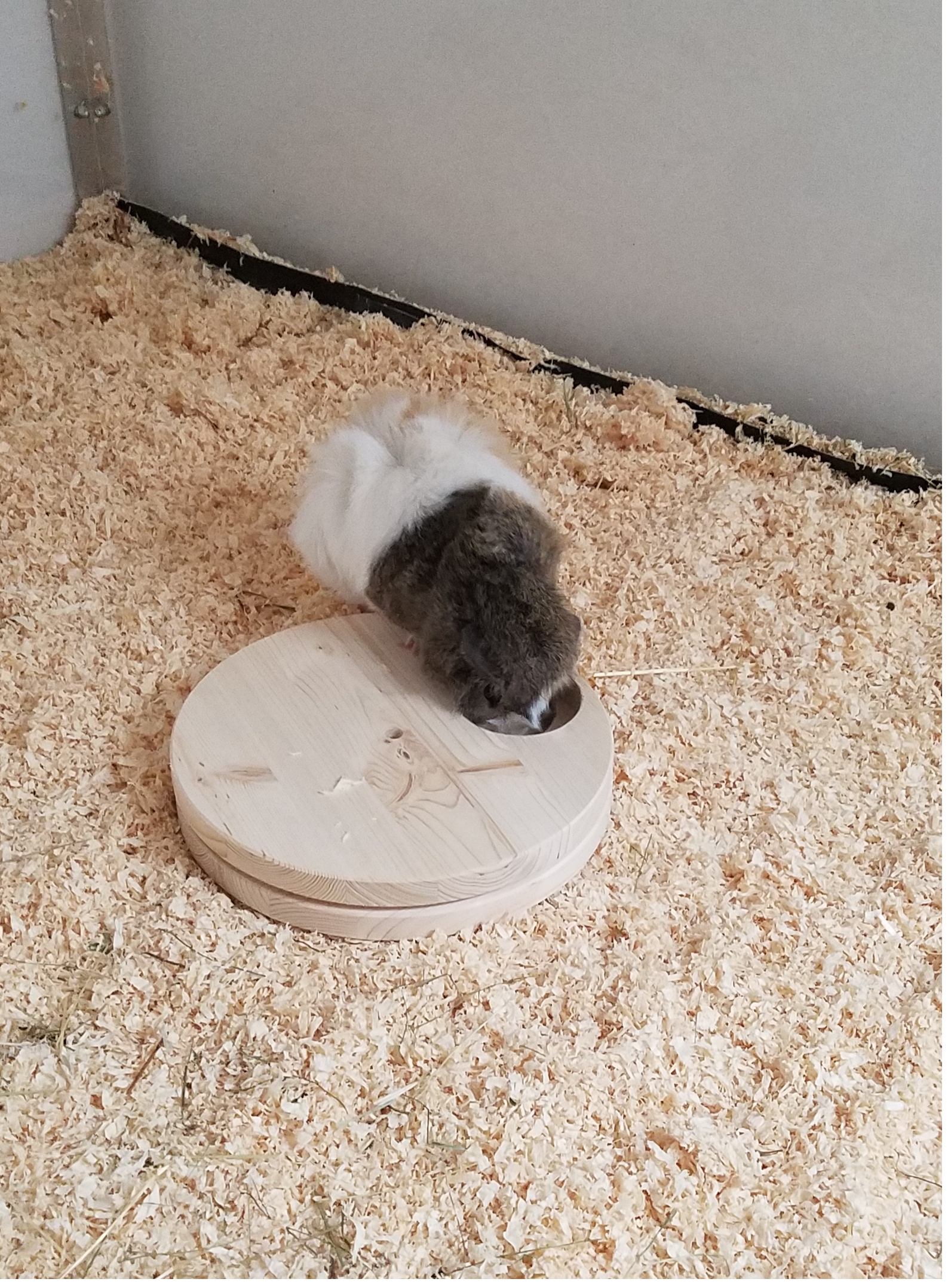 Intelligenzspielzeug für Meerschweinchen und andere Nager. Die 6 Vertiefungen des Unterteils können mit Leckerlis wie Erbsenflocken, Karottenstückchen o.ä. befüllt werden. Durch Drehen des Oberteils kommen die Tiere an die begehrten Leckerbissen. Bitte nur unter Aufsicht verwenden. Gefertigt aus Nadelleimholz, hergestellt in Deutschland.