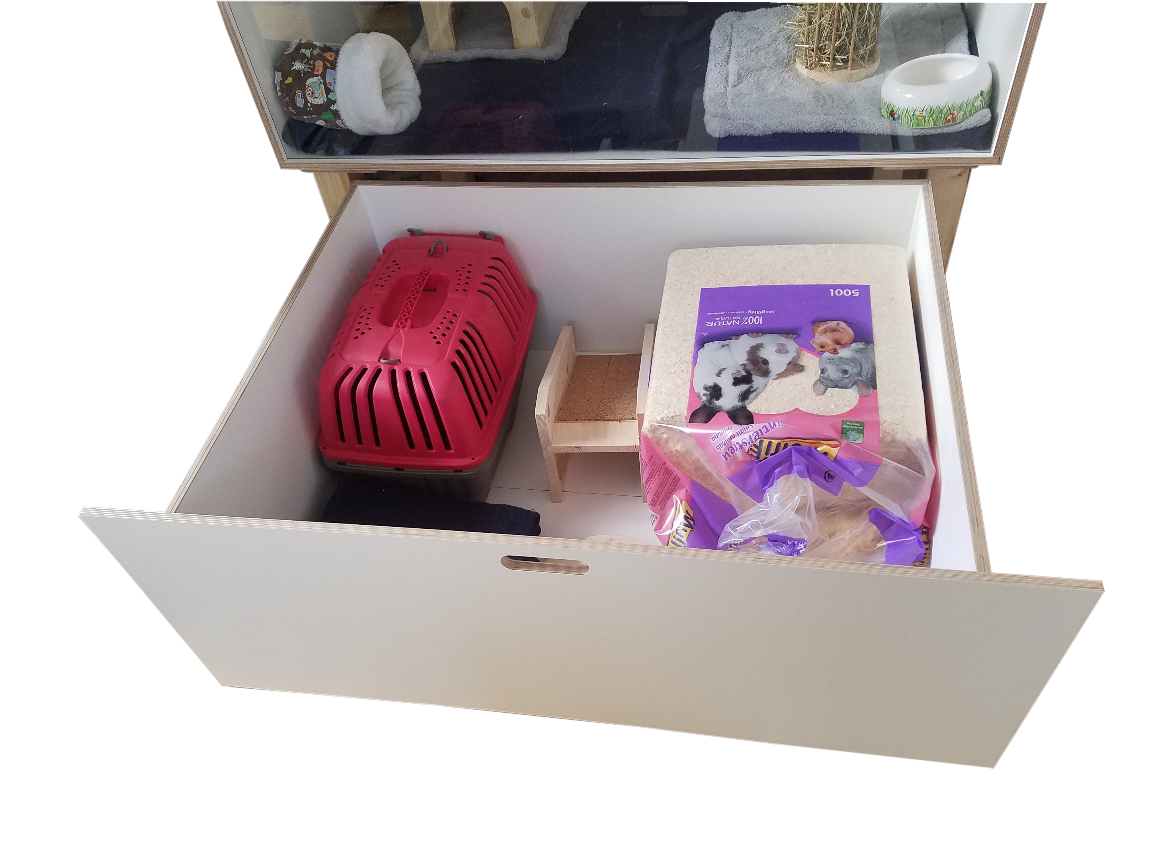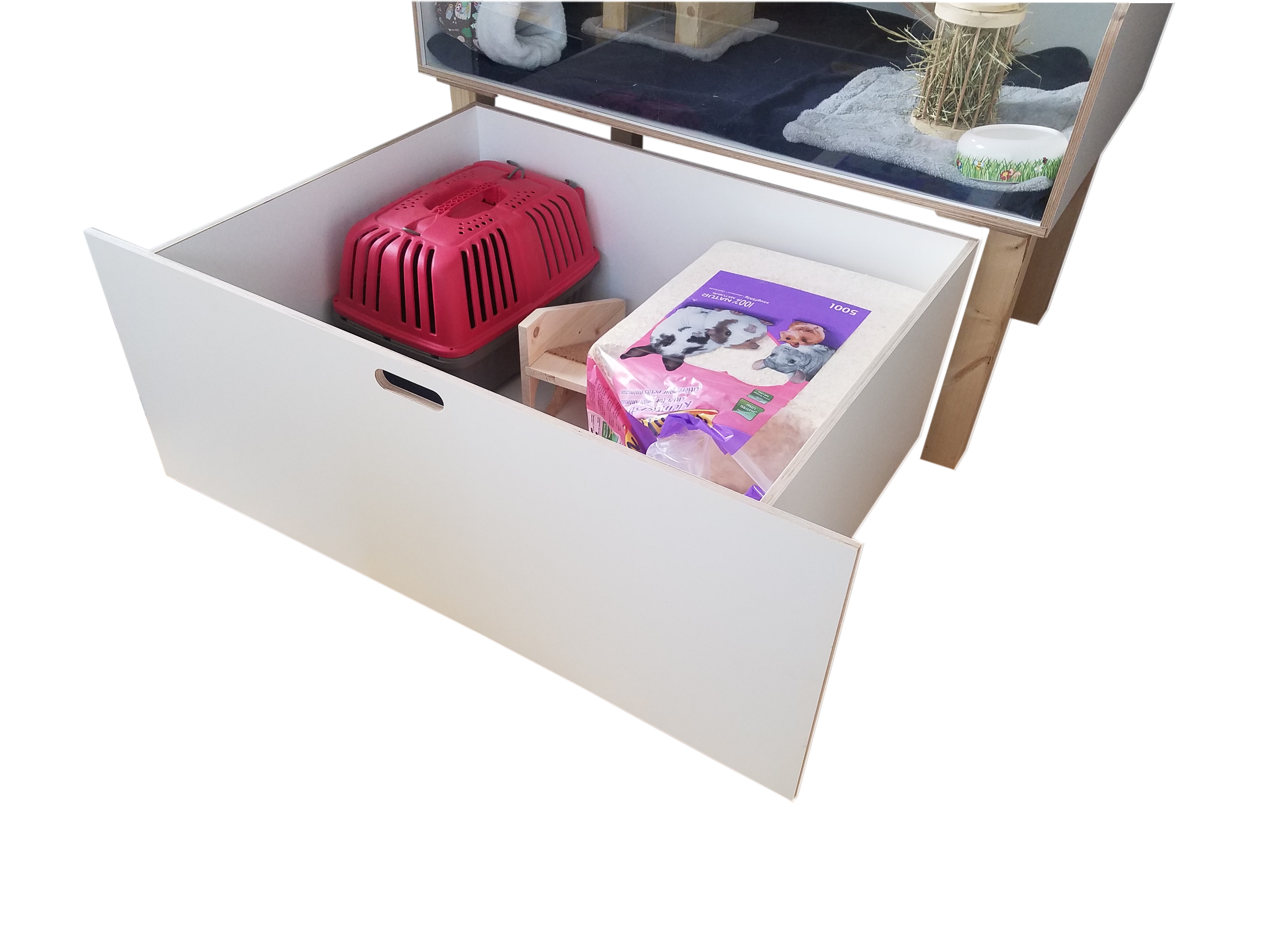 Stabile Schublade mit Rollen für viel Stauraum passend zu unserem Schweinestall (Art.Nr. 80015). So verschwinden Pipipads, Transportbox, Heusack und andere Untensilien direkt unter dem Stall und sind doch sogleich griffbereit. Die Schublade hat eine größere Blende, so dass die Beine des Schweinestalls dahinter verschwinden. Die Schublade wird zerlegt geliefert und ist einfach zu montieren (benötigtes Werkzeug: Kreuzschlitzschraubendreher), der Zeitaufwand dafür beträgt ca. 10 Minuten.