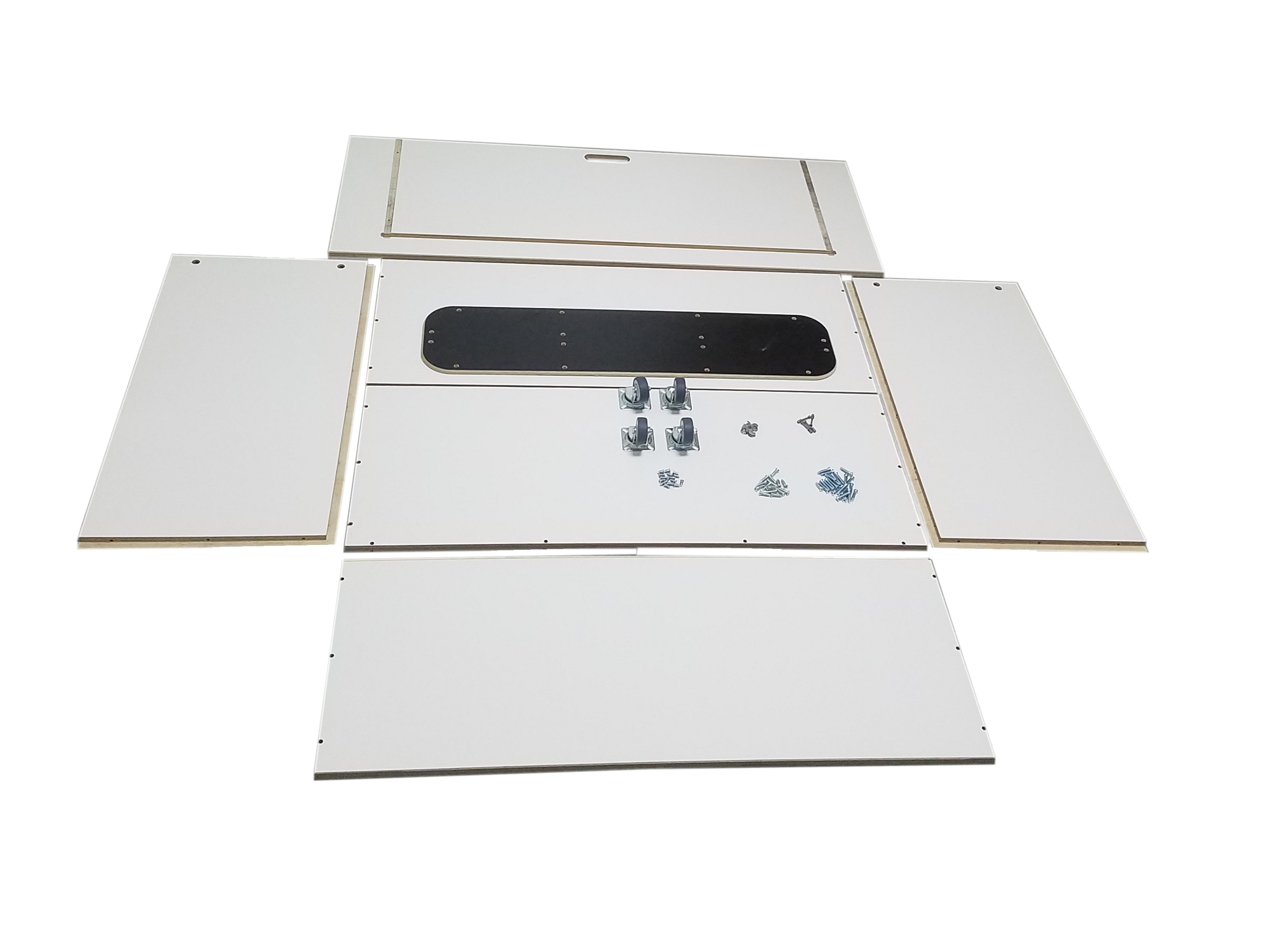 Aus 15 mm wasserfest verleimtem Furniersperrholz mit weißer Melaminharzbeschichtung* oder mit schwarzer Phenolharzbeschichtung. Im Lieferumfang enthalten sind die benötigten Schrauben, sowie 4 Rollen. Gefertigt in Deutschland.