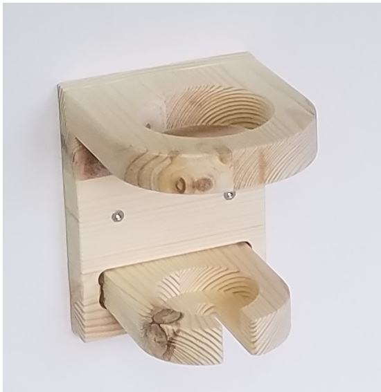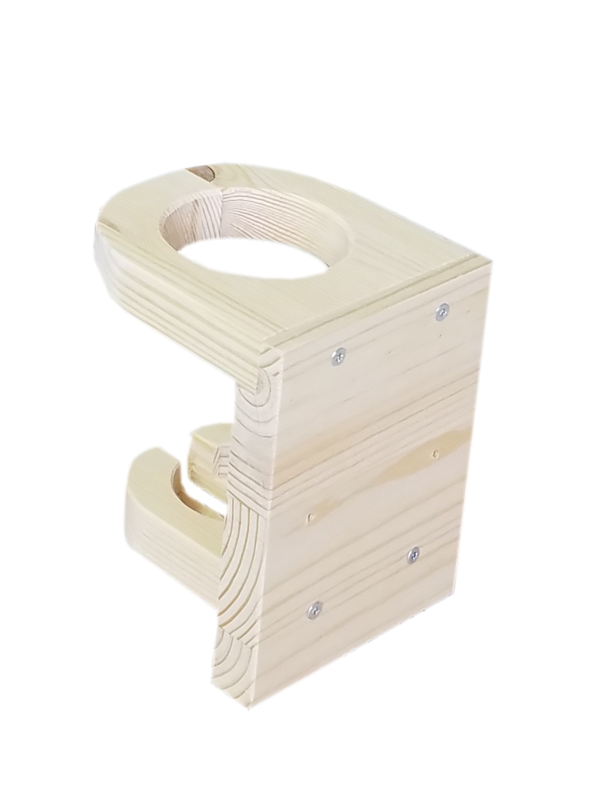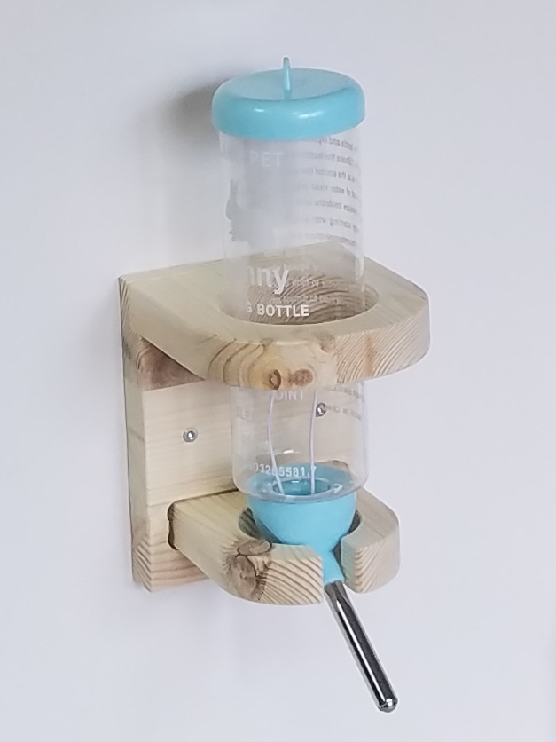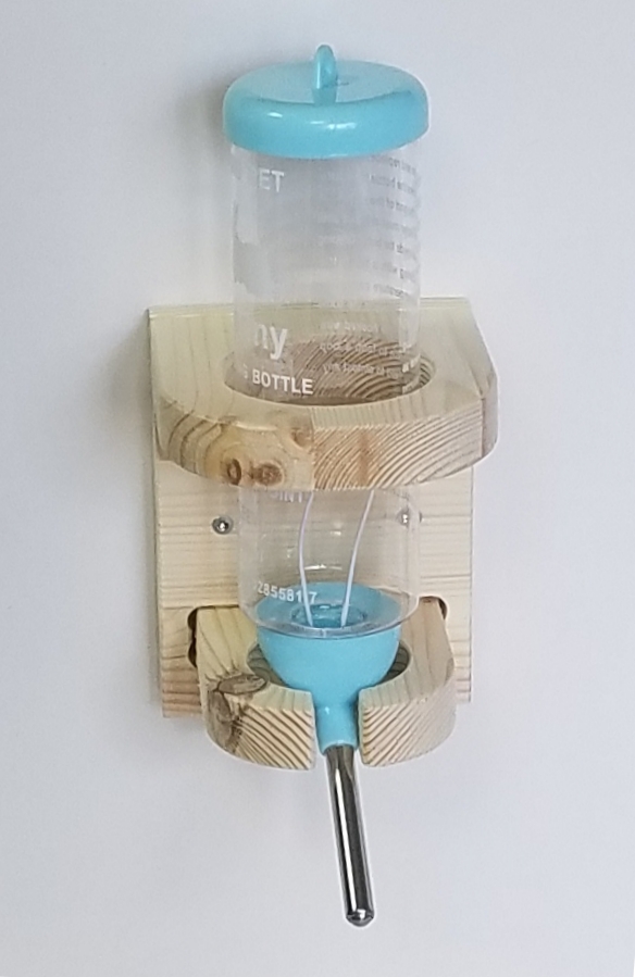 Trinkflaschenhalterung zum Anschrauben für Stall und Gehegewände. Die Halterung wird ganz einfach mit zwei Schrauben platzsparend und sicher an der Gehegewand befestigt. Diese Trinkflaschenhalterung ist passend für die Trinkflasche Artikel-Nr.80065 oder andere Trinkflaschen für Kleintiere mit einem Fassungsvermögen von ca. 250 ml und einem Durchmesser von maximal 54mm. Gefertigt aus Nadelleimholz und in Deutschland.