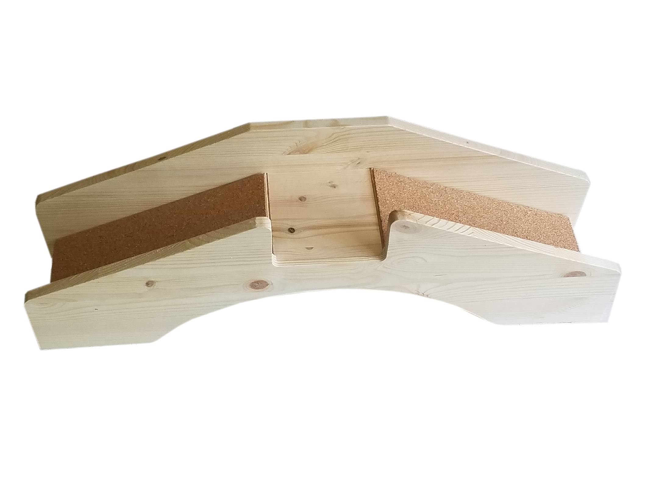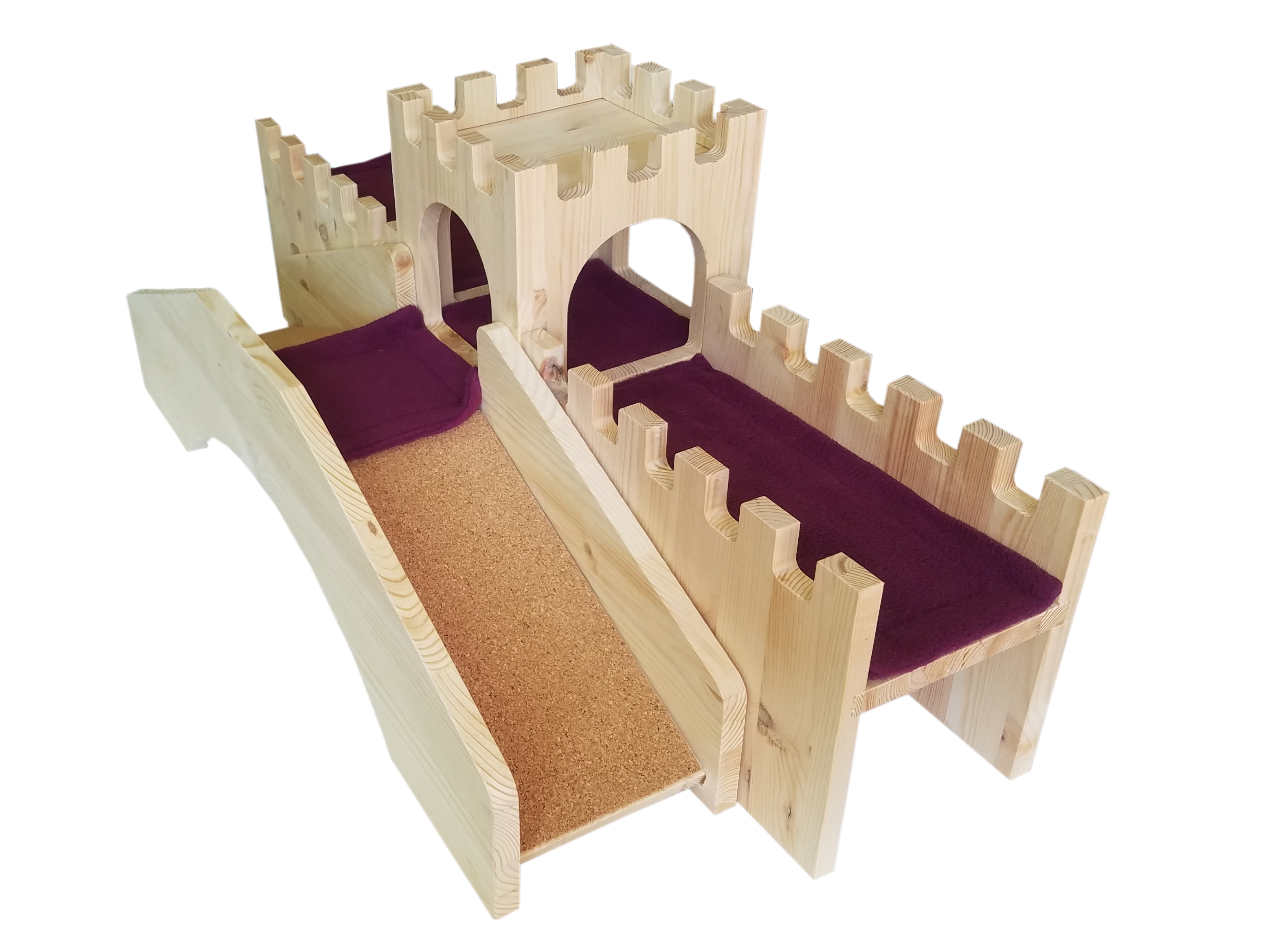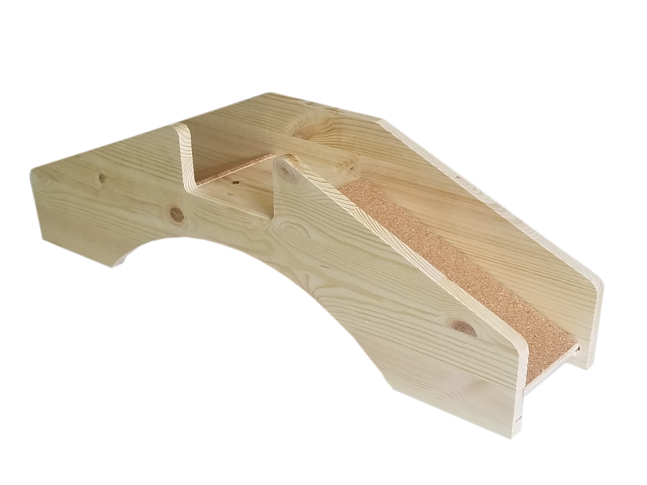 Ob als Freitreppe für die Wutzenburg, als flexibel anstellbare Rampe für andere Häuschen oder als Brücke mitten im Gehege, diese Doppelrampe bietet viele Möglichkeiten. Sie ist mit einer Steigung von 22,5° sehr bequem für Meerschweinchen zu begehen und die Brüstung zu beiden Seiten bietet auch unsicheren und älteren Tieren viel Sicherheit. An einer Seite ist die Brüstung offen und bietet somit einen Übergang zur Wutzenburg oder zu anderen Häuschen. Für rutschsicheres Gehen ist die Rampe mit Kork beschichtet. Unter den beiden Aufgängen können sich die Fellnasen sicher und geborgen verstecken. Aus naturbelassenem Nadelleimholz. Hergestellt in Deutschland.