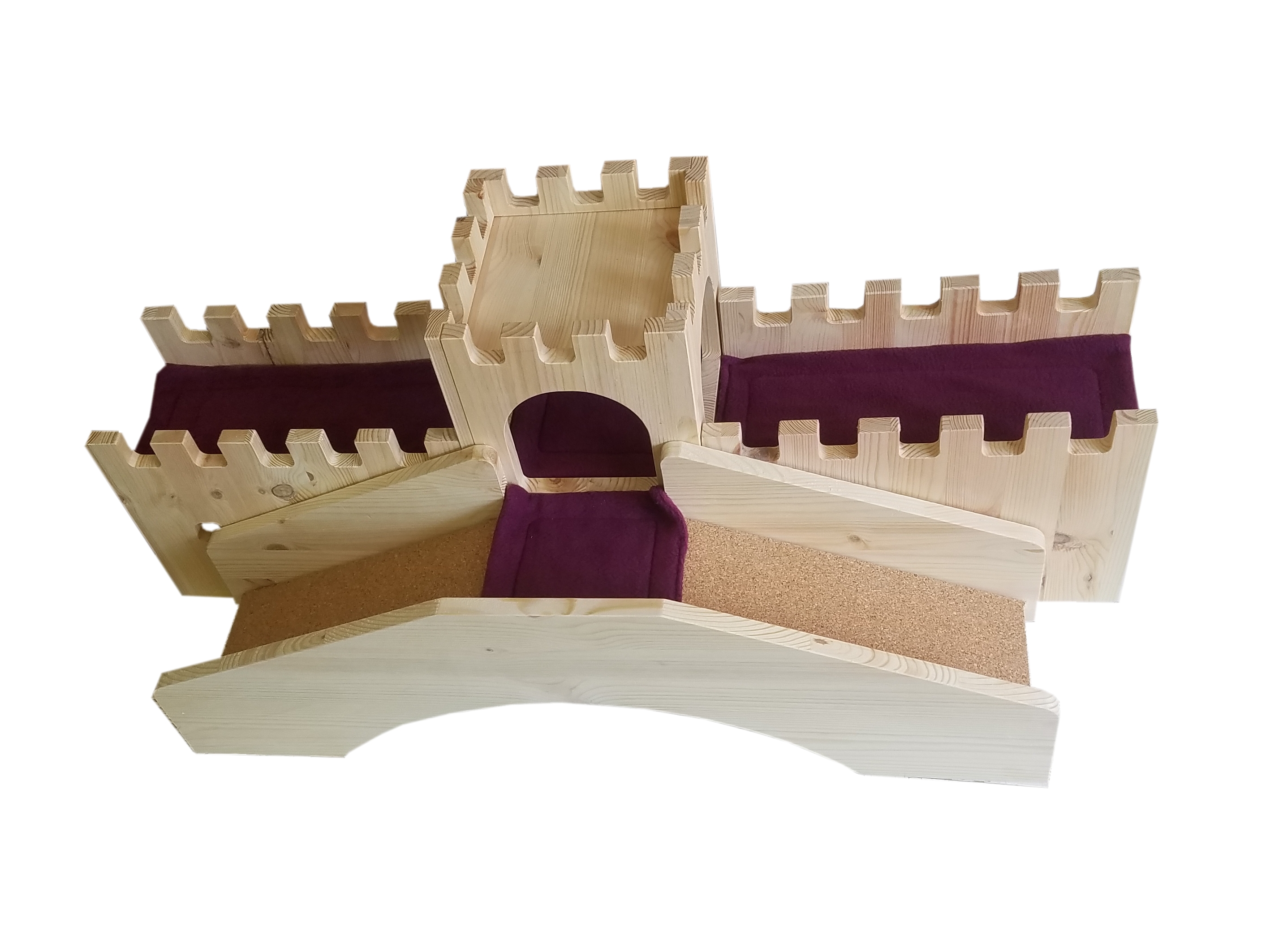 Wehrgang für die Wutzenburg zum Kombinieren und Ergänzen nach Lust und Laune. Der Wehrgang hat an beiden Längsseiten einen Eingang und ist an beiden Schmalseiten offen, so dass er mit dem Wutzenburg Burgturm (Art.Nr.80029), weiteren Wehrgangteilen (Art.Nr. 80087, 80097, 80107), sowie der Rampe (Art.Nr. 80033) oder dem Tunnel (Art.Nr. 80012) kombiniert werden kann. Zum Schutz des Wehrgangs gegen Urin gibt es passende Pipipads in verschiedenen Farben (Art.Nr. 80052).  Hergestellt aus Nadelleimholz und in Deutschland. Lieferumfang: ein Wehrgang-Element ohne Meerschweinchen und Deko Maße: ca. 350x180x230mm, Durchgänge ca. 125x125mm, die Lauffläche befindet sich in ca.155mm Höhe und passt so genau zur oberen Ebene des Burgturmes.