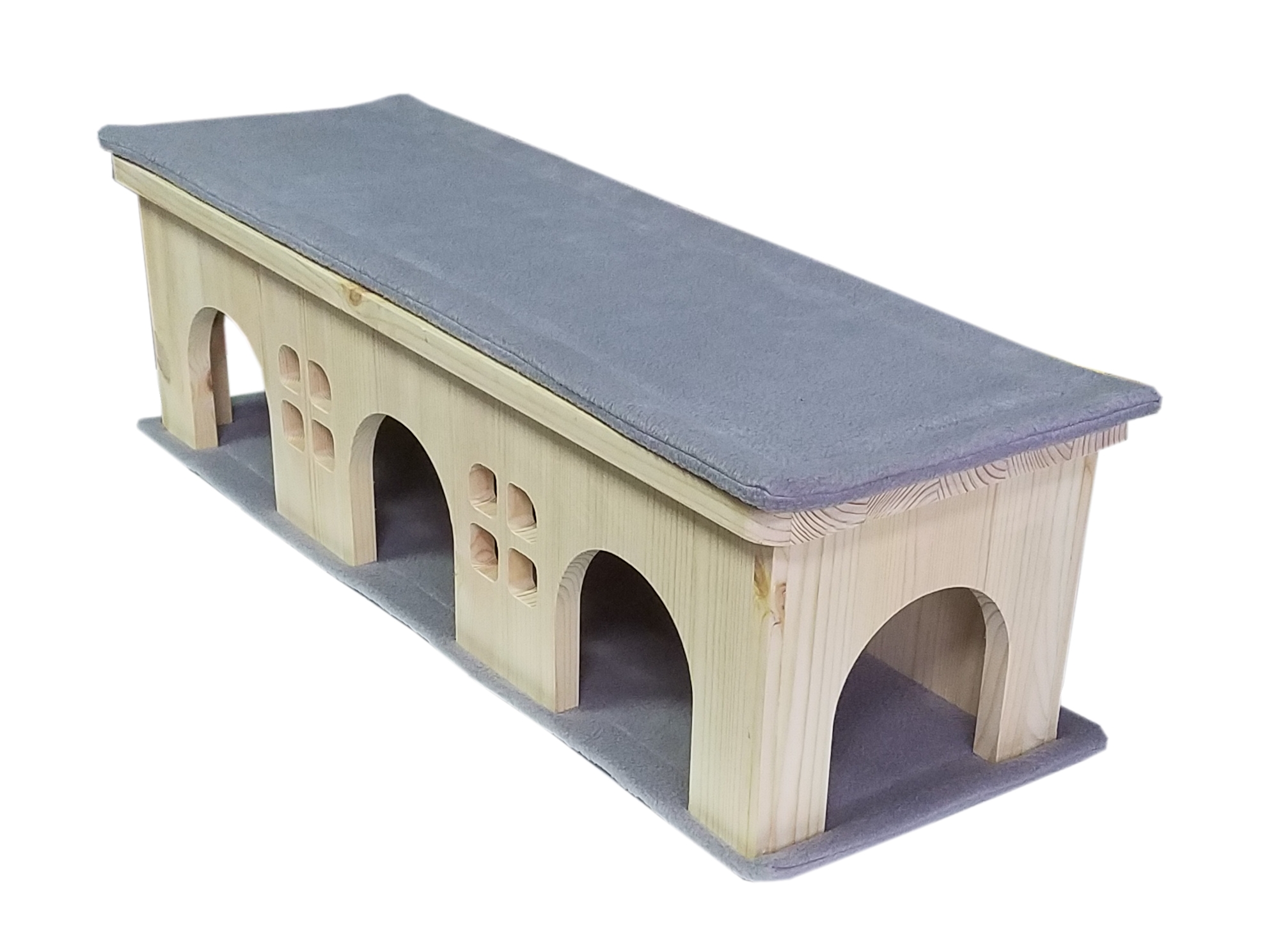 Pipi Pad für das Meerfamilienhaus zum Schutz des Holzes vor Verunreinigung und Urin. Das Pad passt entweder genau unter das Meerfamilienhaus (Art.Nr.80072) oder auf das Dach, falls das Haus als 2. Ebene genutzt wird. Natürlich kann es aber auch unabhängig vom Haus genutzt werden. Diese urindichte Unterlage besteht aus drei Schichten: zwei Schichten kuscheliger Fleecestoff und dazwischen eine wasserdichte Inkontinenzeinlage, so wie sie auch in der Kranken - oder Altenpflege verwendet wird. Die Inkontinenzeinlage wiederum besteht aus zwei Schichten Baumwolle und einer mittleren Schicht aus Polyurethan. Dadurch ist das Pad auch beidseitig benutzbar. Das Pad ist maschinenwaschbar. Da gerade die Inkontinenzeinlage beim Waschen oft eingeht, werden alle Textilien vor dem Nähen bei uns gewaschen.