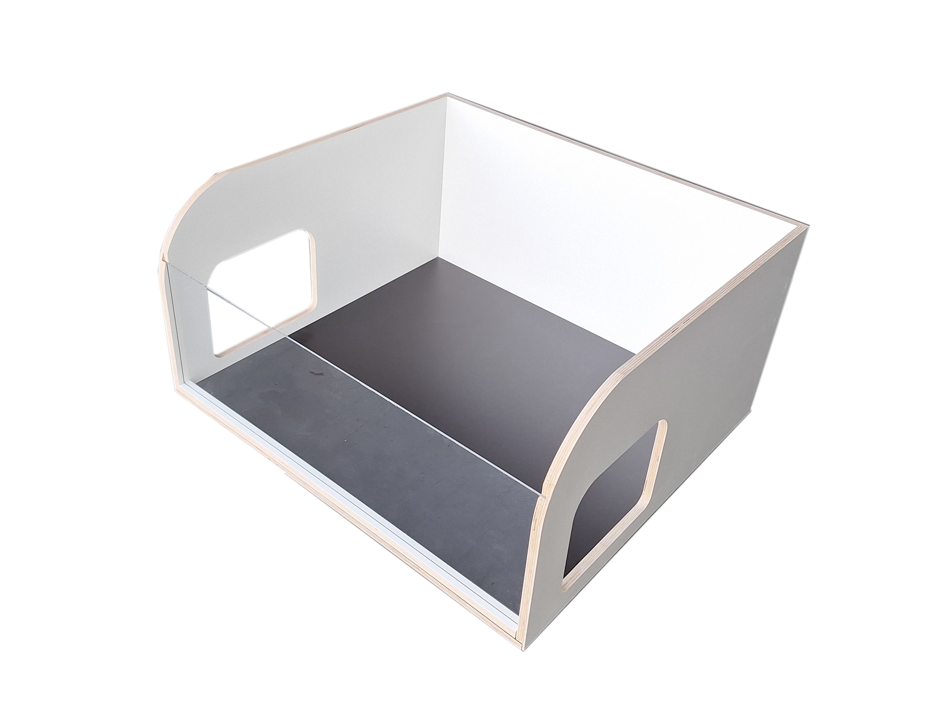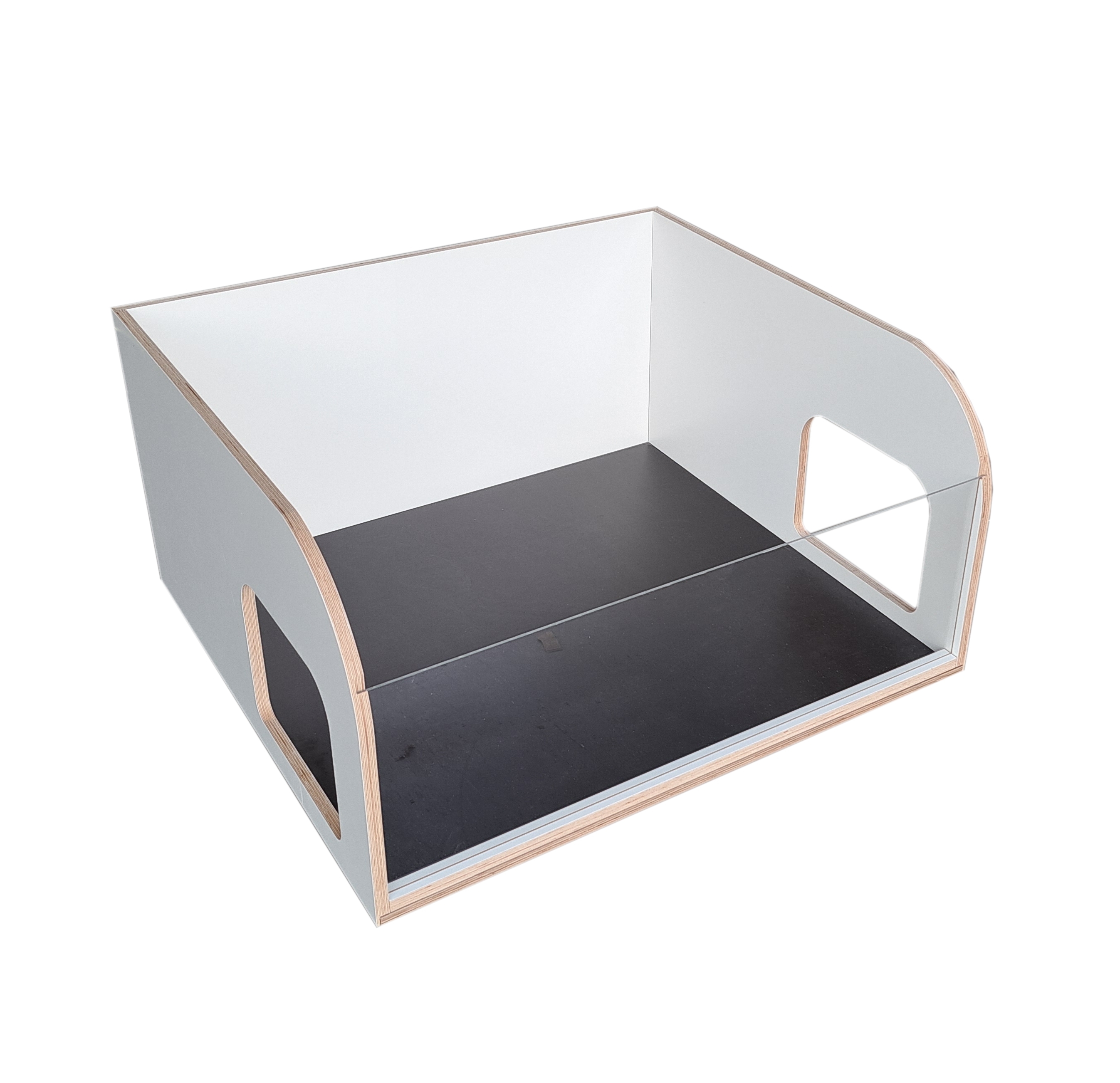 Aus 15 mm wasserfest verleimtem Furniersperrholz mit weißer Melaminharzbeschichtung* und 3 mm Acrylglas. Im Lieferumfang enthalten sind die benötigten Schrauben. Gefertigt in Deutschland.